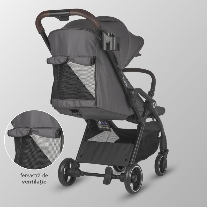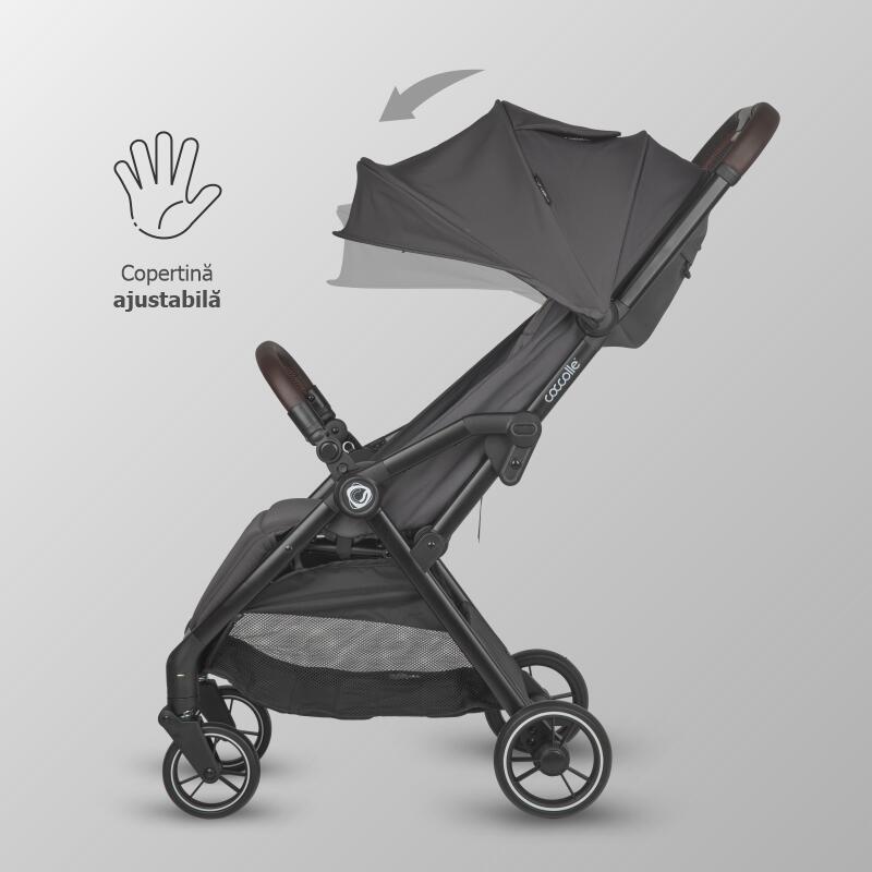 Copertina caruciorului are dimensiuni generoase, oferind protectie UV impotriva razelor daunatoare ale soarelui. Supraincalzirea poate fi considerata de domeniul trecutului deoarece caruciorul este dotat atat cu o fereastra de ventilatie pe copertina, cat si cu o deschidere la spatele produsului.