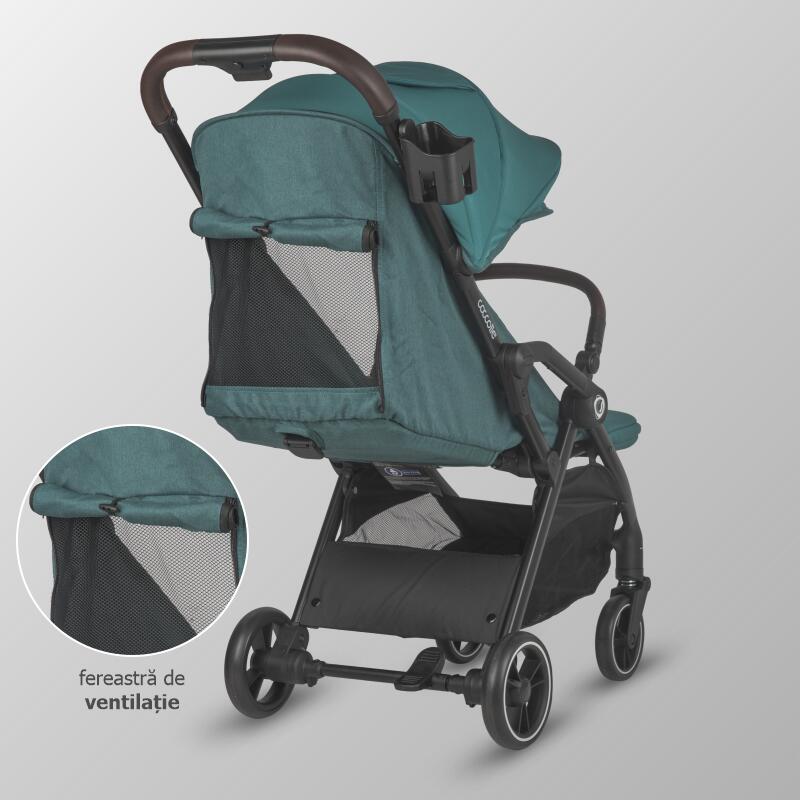 Copertina caruciorului are dimensiuni generoase, oferind protectie UV impotriva razelor daunatoare ale soarelui. Supraincalzirea poate fi considerata de domeniul trecutului deoarece caruciorul este dotat atat cu o fereastra de ventilatie pe copertina, cat si cu o deschidere la spatele produsului.