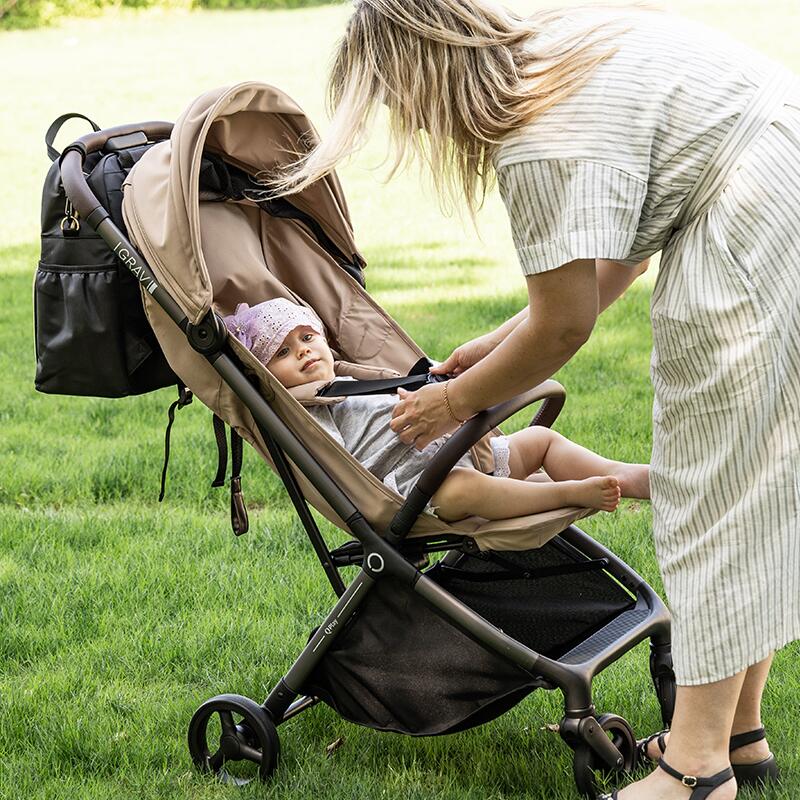 QPlay GRAV are spătar ajustabil de la poziție complet plată la vertical, astfel încât plimbarea să se transforme rapid în somn de prânz, iar copilul să stea comod și când e activ. În plus, șezutul lat și panoul de sprijin pentru picioare reglabil ajută la o poziție relaxată în fiecare etapă.