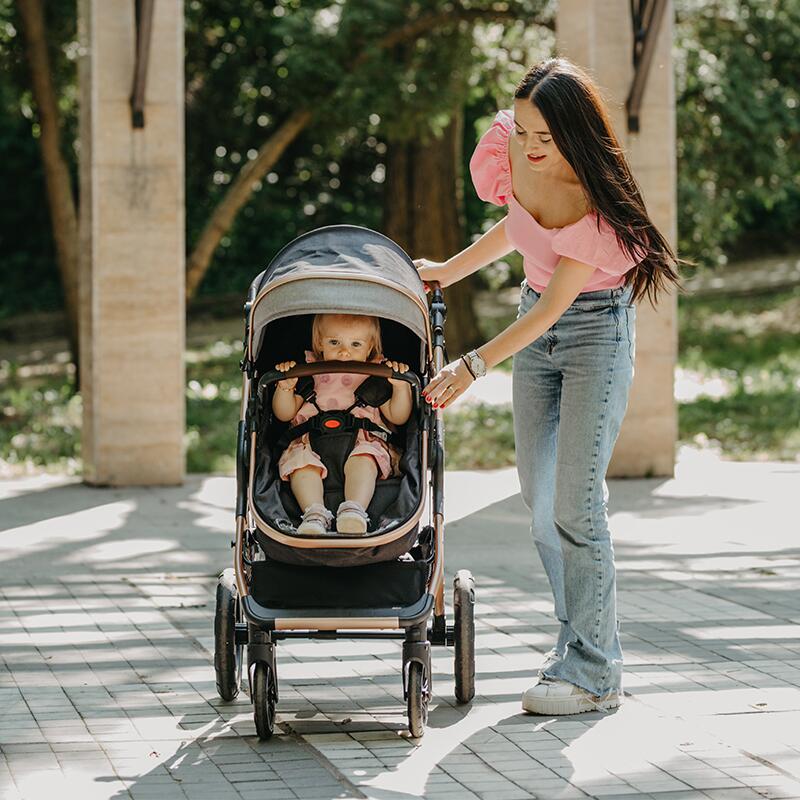 Produsul este multifunctional si ajustabil in functie de nevoile copilului tau: spatarul caruciorului poate fi ajustat in mai multe pozitii pe spate (3 pozitii - 100-degree seat / 145-degree seat, 180-degree flat), iar faptul ca unitatea transformabila se ajusteaza printr-un sistem de chingi face posibila ajustarea bazata pe nevoile copilului tau. De asemenea, copertina are dimensiuni generoase si poate fi fixata in mai multe pozitii, in functie de vremea de afara sau de preferintele celui mic.