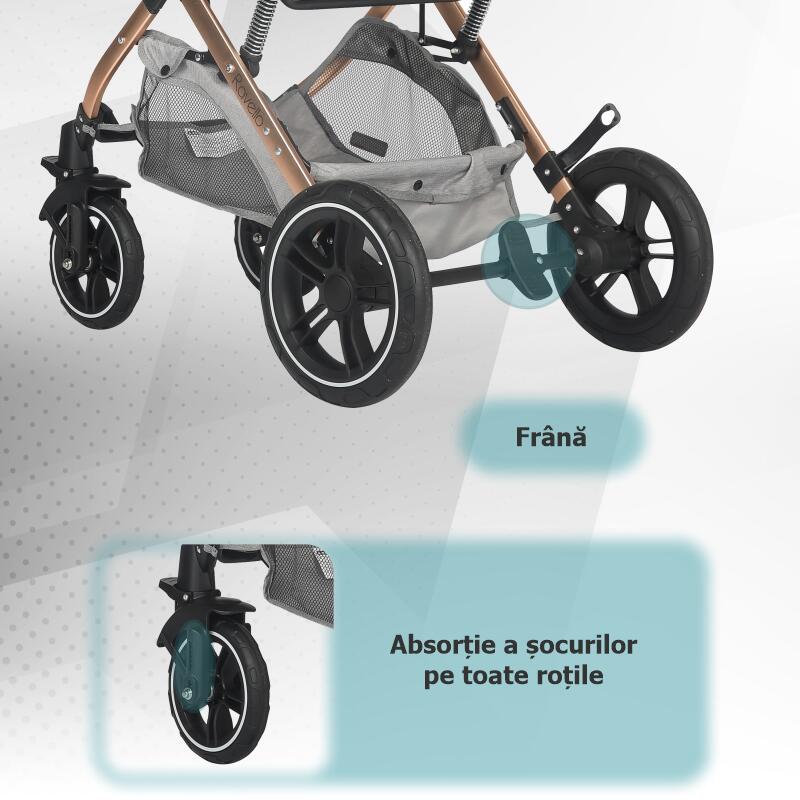 Coccolle Ravello este echipat cu roti de dimensiuni generoase fabricate din aliaj PU, un material care nu se sparge si nu se dezumfla indiferent de terenul pe care este utilizat.