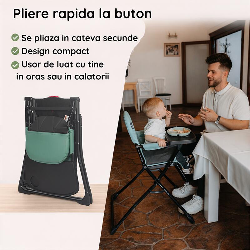 Destinat familiilor care pun pret pe flexibilitate si economia de spatiu, scaunul de luat masa Coccolle Miso ofera un design simplu, practic si comod bebelusilor care isi incep aventura in diversa lume a mancarurilor si bauturilor.
